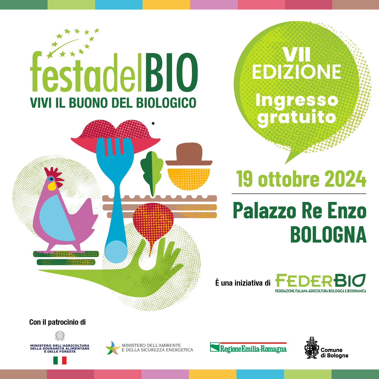 Sabato 19 ottobre, a Palazzo Re Enzo, nel cuore di Bologna, torna l’evento di riferimento del biologico italiano, con un focus dedicato ai valori e ai benefici della dieta mediterranea bio. Un ricco programma che unisce talk, degustazioni, un esilarante show cooking con Vito, intrattenimento e divertimento per tutta la famiglia. Moderano la giornata Patrizio Roversi e Tessa Gelisio.